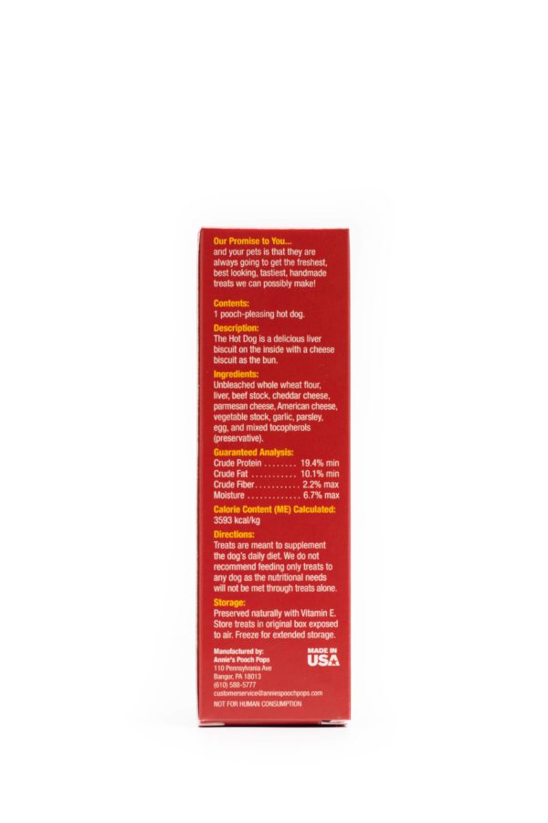 So, why settle for ordinary treats when you can treat your pup to the gourmet experience of Annie's Hotdog? Made with love and premium ingredients like unbleached whole wheat flour, savory beef liver, a blend of cheeses, and a sprinkle of parsley, these treats are a delicious way to show your pup some extra love.